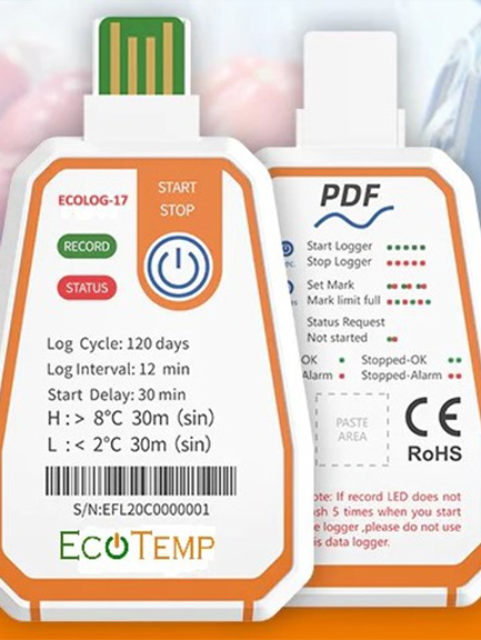 The ECO TEMP data logger is a simple, software-free device designed to monitor and record temperature for safe shipments. With preset alarm limits, it instantly alerts you if conditions move outside the refrigeration zone.